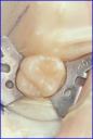 A: 奥歯の噛み合わせには、山あり谷ありとても複雑な形をしていて、その谷底はとても細い隙間になっています。
