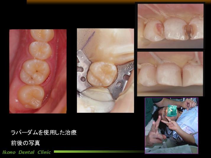 そこで安全にしかも治療をより確実なものにするために、お口にゴムのマスクのようなもの(ラバーダム)をして治療する歯だけ露出させて行う治療法をお勧めしています。