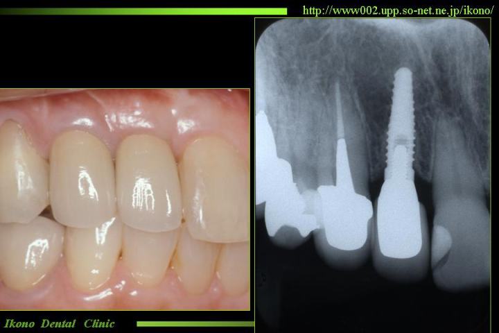 | 前歯にインプラントを埋入しました。 前歯のインプラントを美しく仕上げるためにはインプラントの技術だけでなく、 再生療法など様々なテクニックが求められます。隣の歯を削らずに済みました。 | |