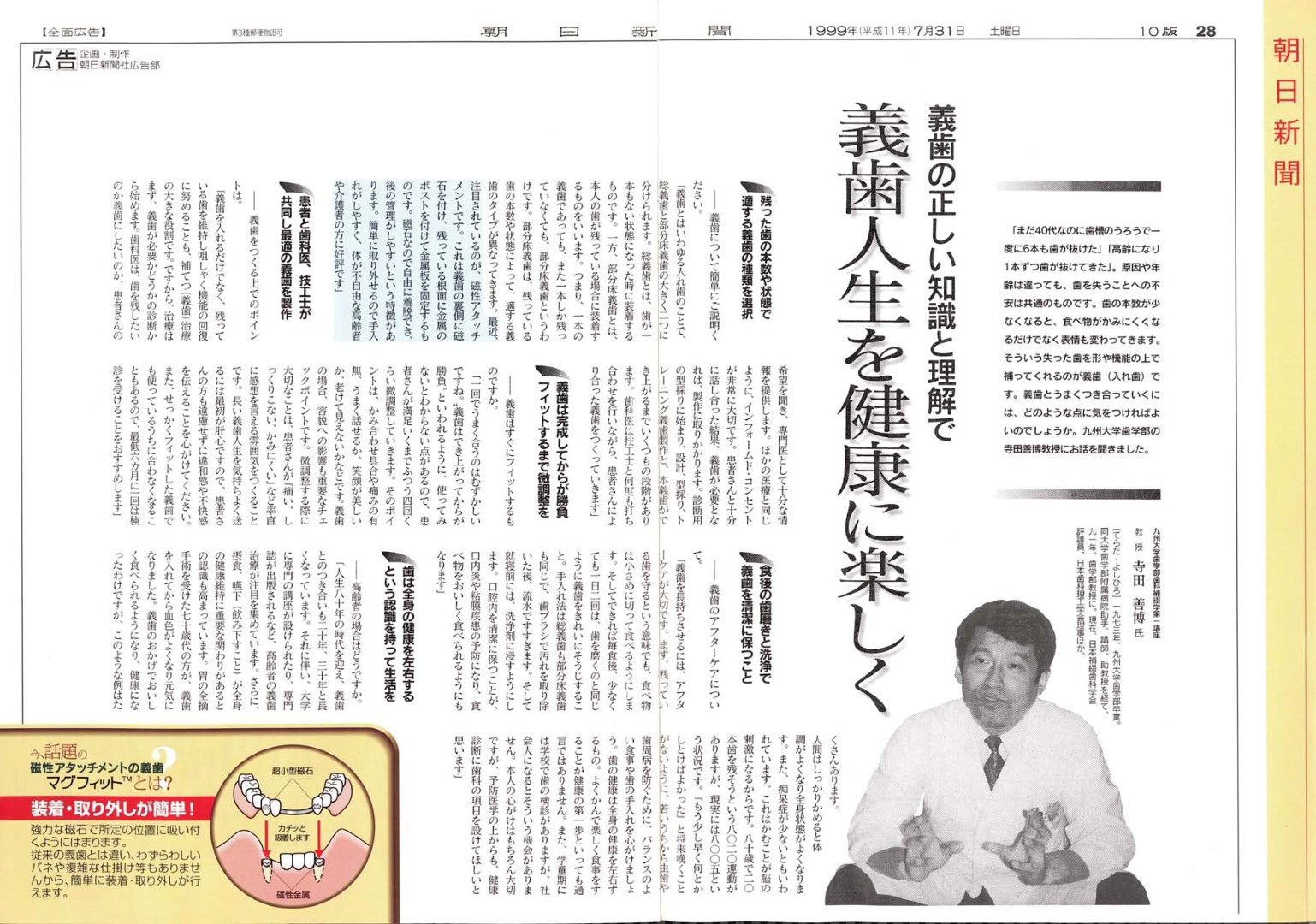 オーダーメイドの義歯の一例として磁石義歯(磁性アタッチメント義歯)が挙げられます。